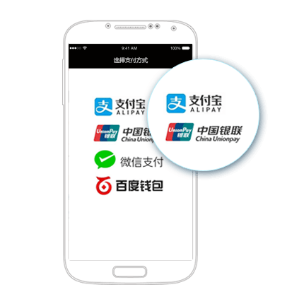云奕支付平台,为iOS/Android原生/H5 App提供支付解决方案:支持微信支付、支付宝支付、银联手机支付、百度钱包等。